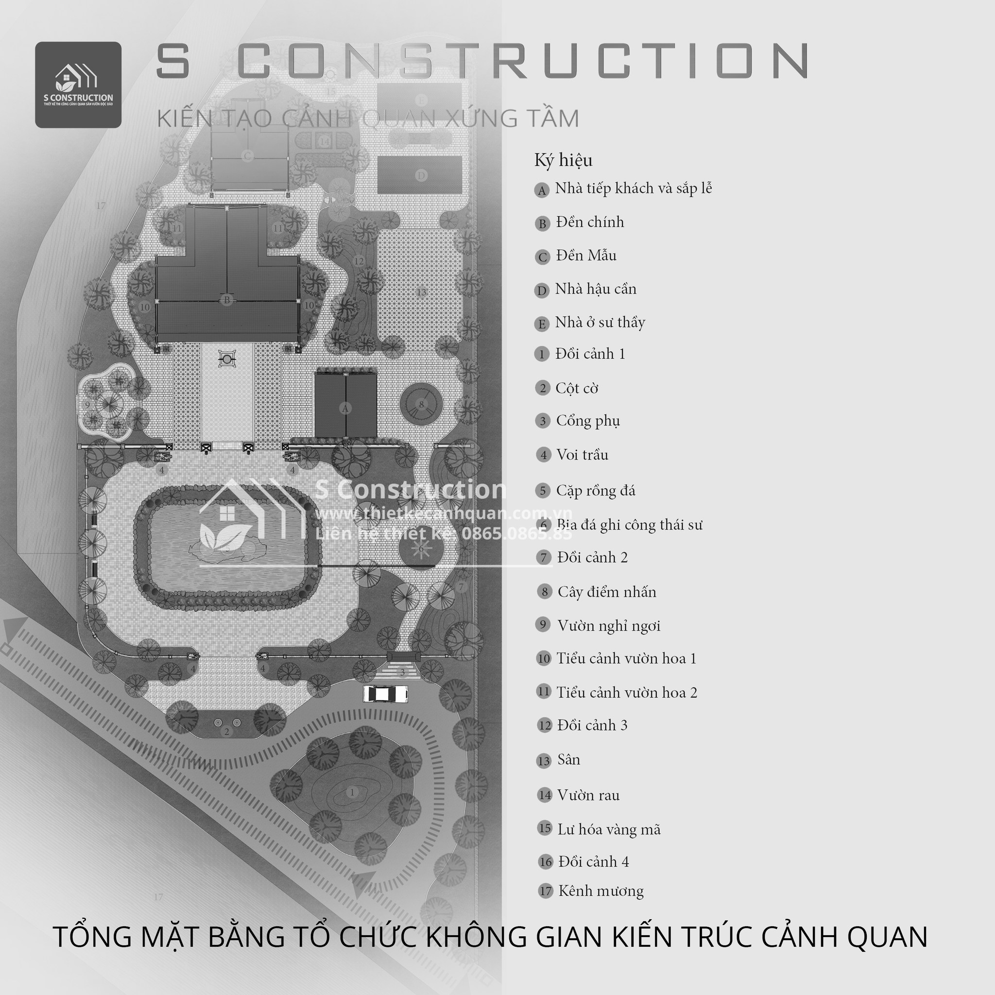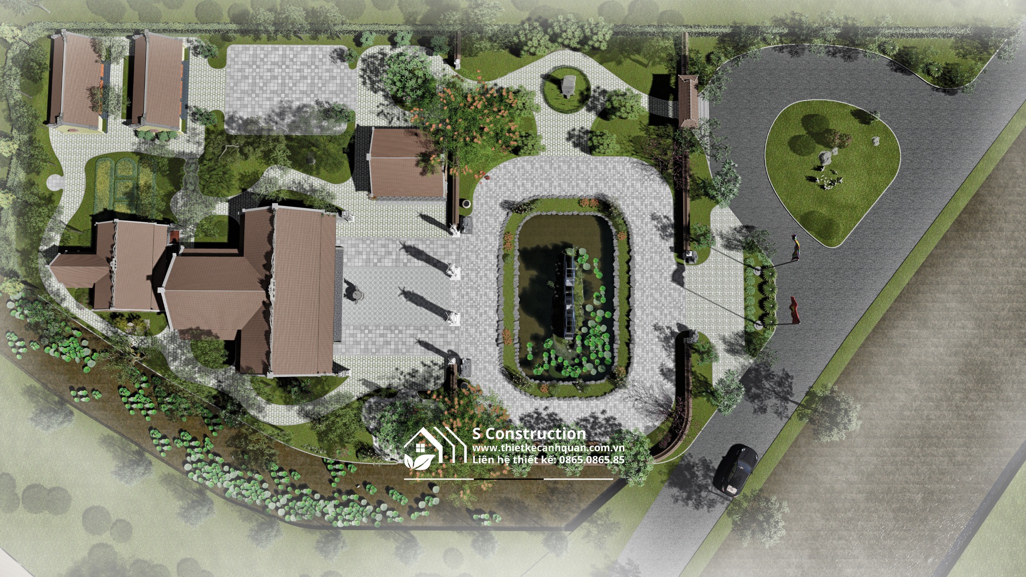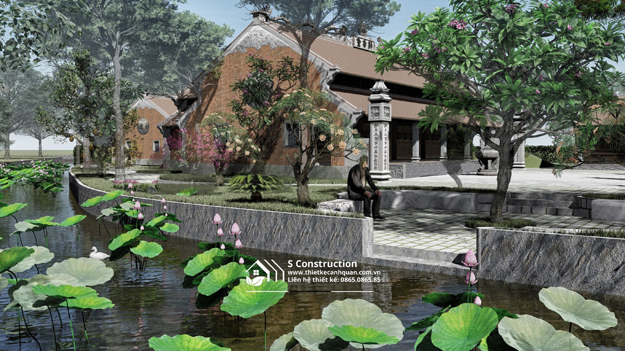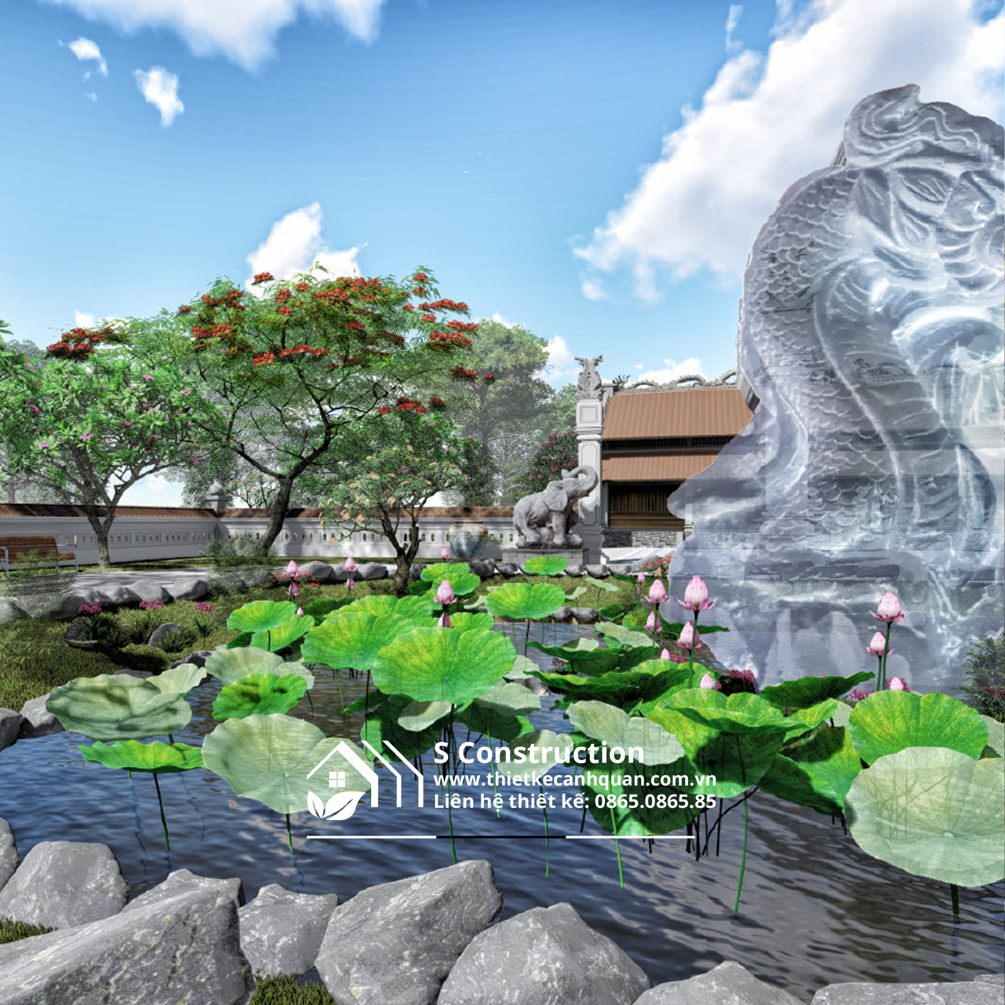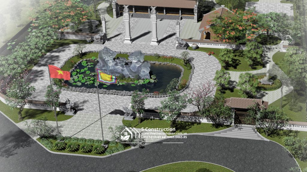 Khi thiết kế đền Thái Sư Trần Quang Khải ngoài những yếu tố về mặt phong thủy chúng tôi qua tâm đến những vấn đề bố cục cảnh quan của đền.